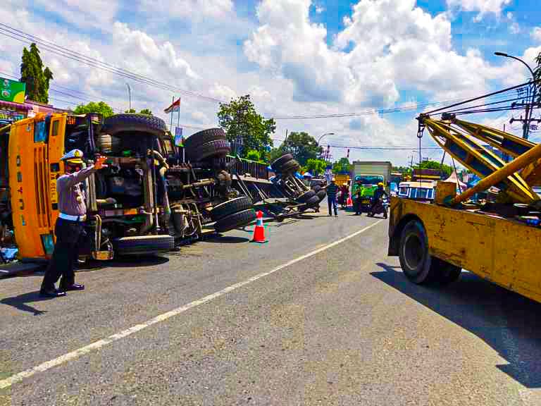 DELI SERDANG (Transnusantara.co.id)-Sebuah Truck Trailler mengalami Kecelakaan Tunggal dengan posisi terbalik terjadi di Jalinsum KM 18,5 persisnya di Simpang Sinalko Desa Tanjung Morawa B Kecamatan Tanjung Morawa Kabupaten Deli Serdang, Senin (3/5) sekira pukul 11.00 wib.