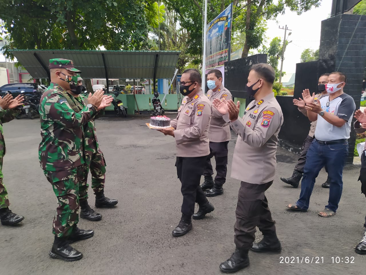 Kapolresta Deli Serdang Kombes Pol Yemi Mandagi, SIK didampingi Pejabat Utama Polresta Deli Serdang berikan Suprise kepada Dandim 0204/DS Letkol Kav Jackie Yudhantara Dalam Rangka HUT Kodam I Bukit Barisan Ke 71 Tahun 2021, bertempat di Ruangan Vip Bandara Internsional Kualanamu Senin (21/06).