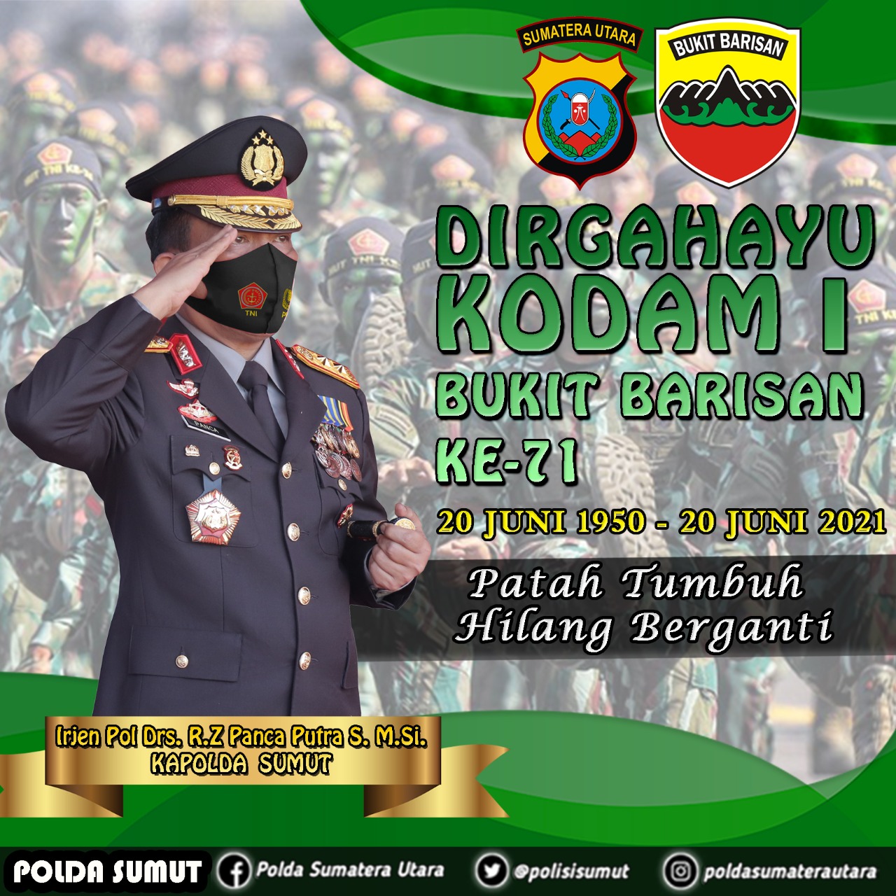 “Patah Tumbuh Hilang Berganti. Dirgahayu Kodam I/BB ke 71,” katanya.