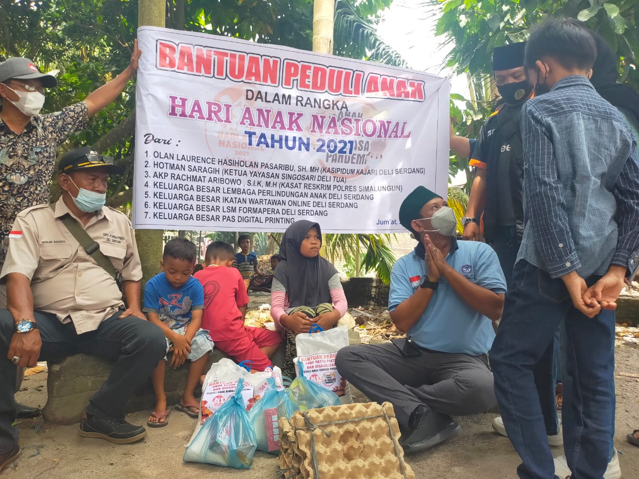 Lembaga Perlindungan Anak (LPA) Kabupaten Deli Serdang yang di pimpin sosok Ketua Junaidi Malik blusukan dari desa ke desa di dua kecamatan yakni Kecamatan Beringin dan Pantai Labu guna memberikan Bantuan Sembako ke sejumlah desa secara langsung pada Minggu (25/7). Hal ini dilakukan Dalam Rangka Memperingati Hari Anak Nasional (HAN) yang setiap tahunnya diperingati dan jatuh pada Tanggal 23 Juli. Untuk Tahun 2021 ini LPA Deli Serdang kembali melakukan kegiatan sosial secara door to door kebeberapa desa dengan menyerahkan puluhan Paket Sembako kepada warga. Selanjutnya Hari Anak Nasional Tahun 2021 kali ini bertajuk” Anak Terlindungi Indonesia Maju”.