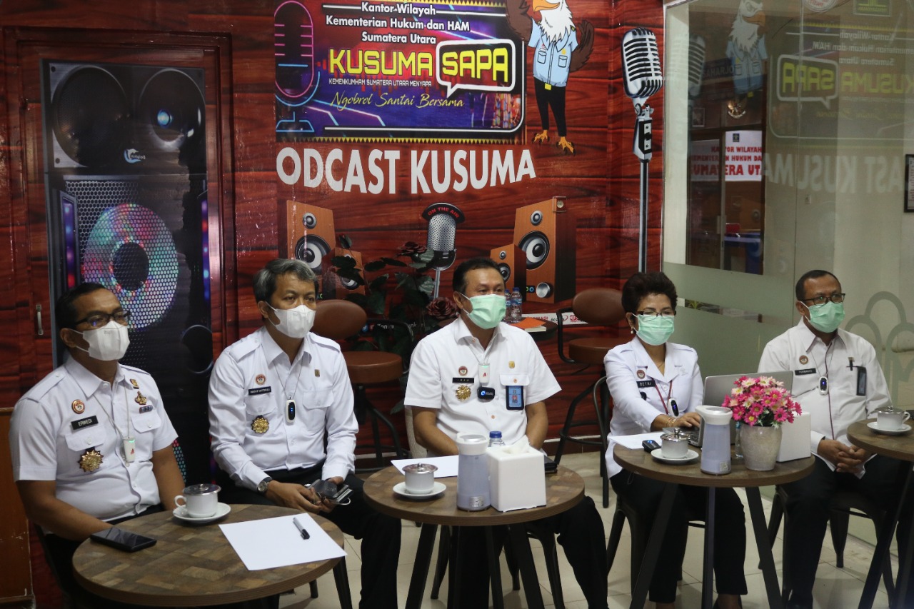 Medan, (TransNusantara.co.id) – Kegiatan KUSUMA Sapa, salah satu inovasi Kantor Wilayah Kementerian Hukum dan Hak Asasi Manusia Sumatera Utara sebagai wadah komunikasi serta koordinasi antara Kantor Wilayah dan Unit Pelaksana Teknis (UPT), kembali dilaksanakan secara virtual, Rabu (28/07/2021)
