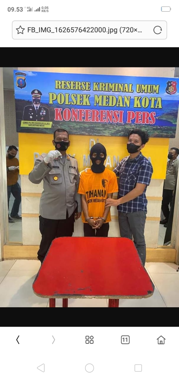 Kapolsek Medan Kota Kompol Rikki Ramadhan melalui Kanit Reskrim Iptu Nova menjelaskan bahwa kejadian tersebut selasa tanggal 13 Juli 2021 sekira pukul 03.30 Wib, di Jalan SM Raja Simpang Jalan HM Joni Medan Kota. Team Reskrim Polsek Medan Kota melaksanakan patroli di seputaran Wilayah hukum (Wilkum) Polsek Medan kota, melintas di jalan SM raja simpang Jalan HM Joni, team melihat seperti mencurigai ada Pria sedang memotong kabel Traffic light, “ujar Nova.