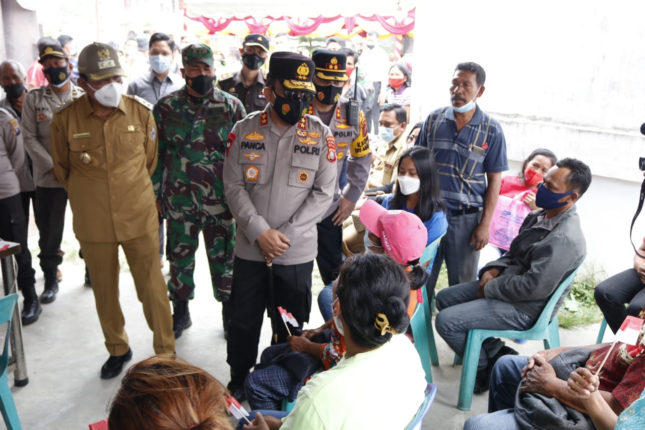 Transnusantara.co.id Taput – Kapoldasu, Irjen Pol RZ Panca Putra Simanjuntak, menyatukan Langsung Pelaksanaan vaksinasi Tahap II di Desa Sopo Partungkoan, KecamatanTarutung, Kabupaten Tapanuli Utara, Sumut, Senin (9/8).