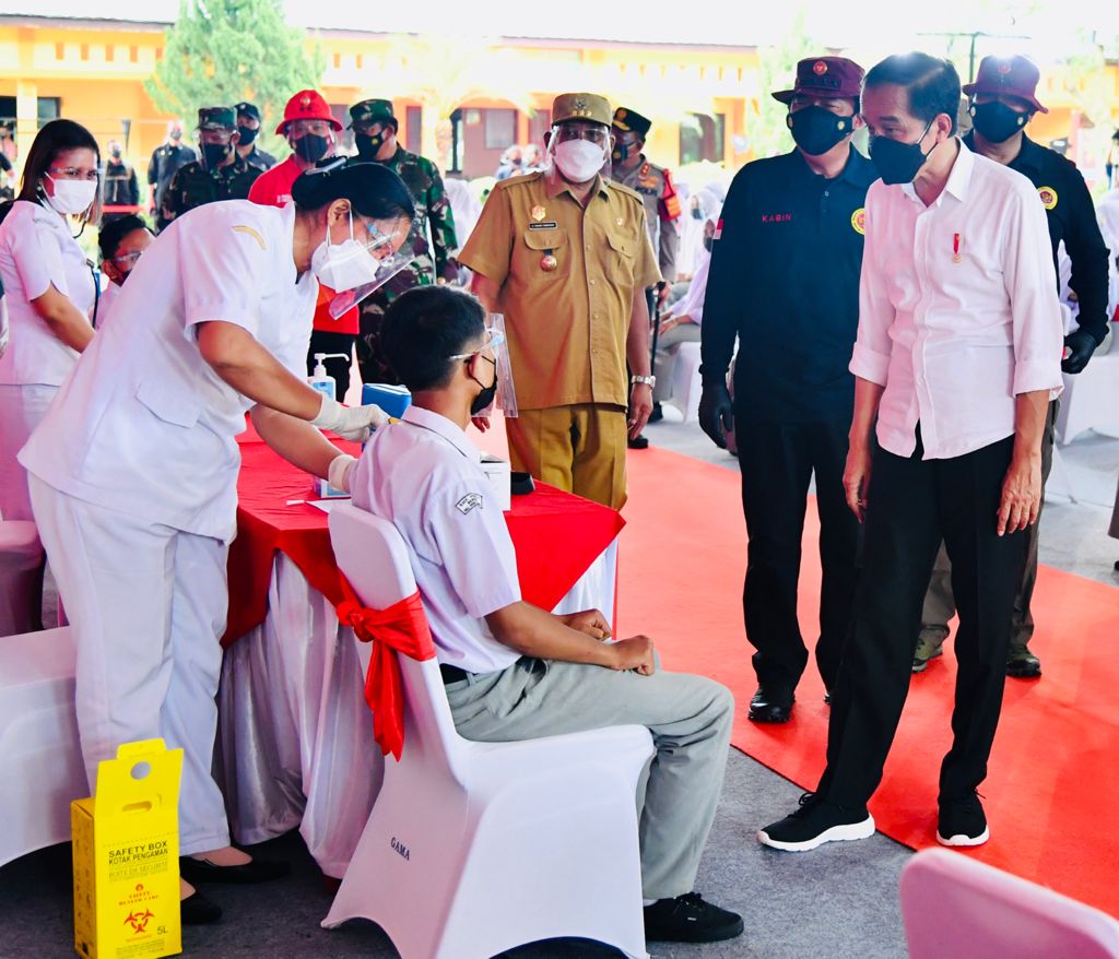 Jokowi menjelaskan, bahwa dirinya berada di Desa Aplasmen, Kecamatan Beringin, dalam rangka memastikan distribusi vaksin.