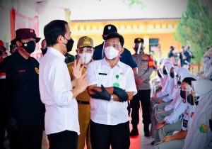 Deliserdang – Transnusantara.co.id – Kapolda Sumut Irjen Pol Drs RZ Panca Putra Simanjuntak M.Si, mendampingi Presiden Joko Widodo meninjau vaksinasi door to door di Dusun I, Desa Aplasmen Kualanamu, Kecamatan Beringin Kabupaten Deliserdang, Kamis 16/9/21.