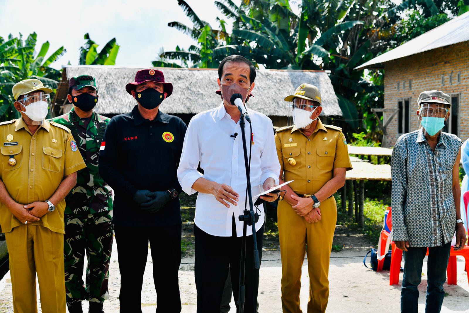Presiden RI Joko Widodo. Panglima TNI Marsekal Hadi Tjahjanto, Kepala Badan Intelijen Negara (BIN) Budi Gunawan, Gubernur Sumatera Utara Edy Rahmayadi dan Bupati Deli Serdang H Ashari Tambunan, meninjau Kegiatan Vaksinasi Pelajar yang digelar di SMKN 1 Beringin, Kabupaten Deli Serdang, pada Kamis (16/9 / 2021. Presiden juga berkesempatan Berdialog bersama Para Pelajar melalui Video Konferensi di Enam Kabupaten/Kota lain secara bersamaan melakukan Kegiatan Vaksinasi.