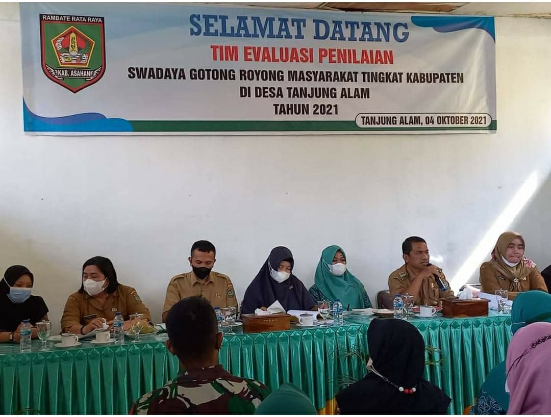 Tim evaluasi penilaian swadaya gotong royong masyarakat tingkat Kabupaten Asahan, mengunjungi desa Tanjung Alam, Kecamatan Sei Dadap, baru-baru ini di Aula Kantor Balai Desa Tanjung Alam, Senin.( 4/10/2021 ).