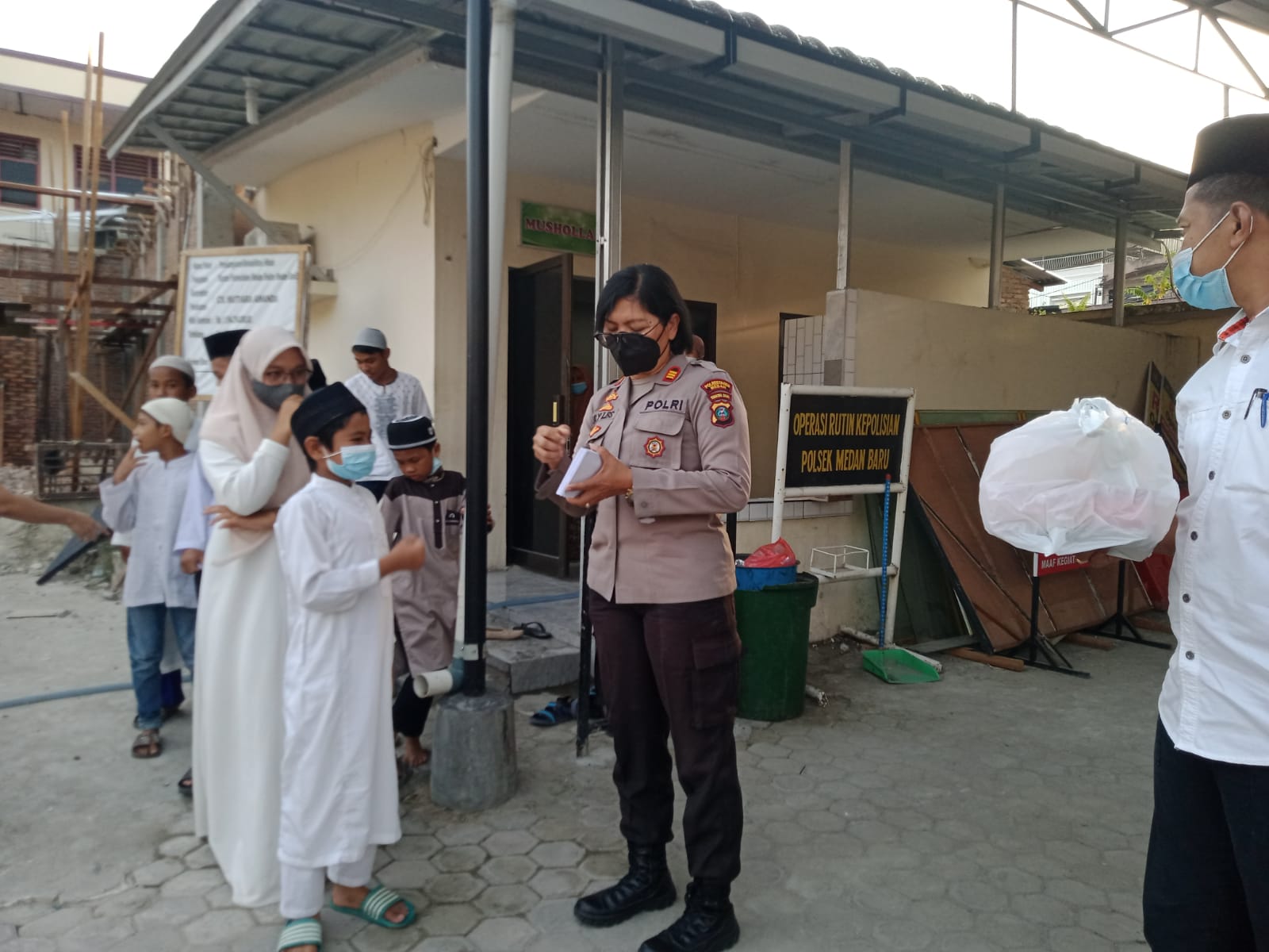 Dalam giat Polsek Medan Baru kali ini, memberikan santunan kepada anak yatim piatu dari Lingkungan 2 Kelurahan Babura Medan dan menggelar doa bersama di Mushola Mapolsek Medan Baru, Jumat (15/10/2021).
