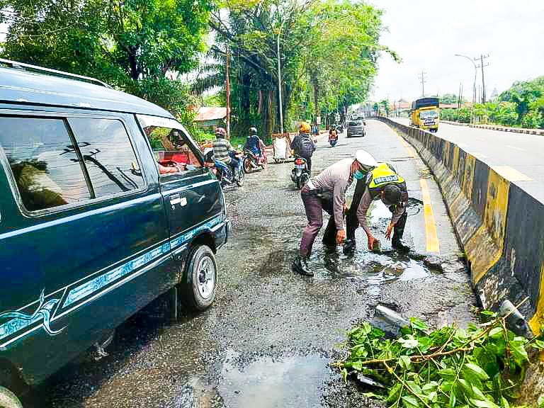 Sat Lantas Polresta Deli Serdang Alihkan Arus Lalu Lintas Kearah Tol Tanjung Morawa Keluar Tol Amplas Akibat Banjir