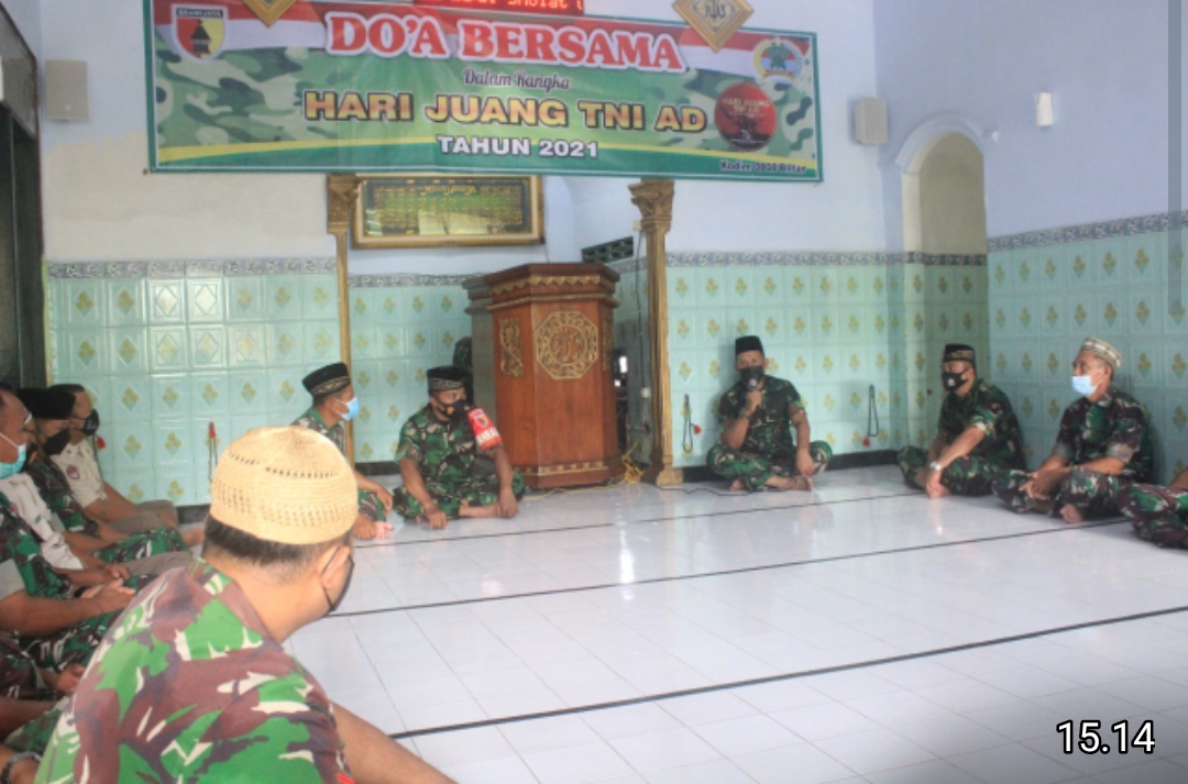 Kodim 0808/Blitar menggelar do’a bersama, dalam rangka memperingati Hari Juang TNI AD ke -76 Tahun 2021 bertempat di Masjid Al Ikhlas Kodim 0808, yang diikuti oleh para Perwira, Bintara, Tamtama dan PNS, Rabu (15/12/2021).