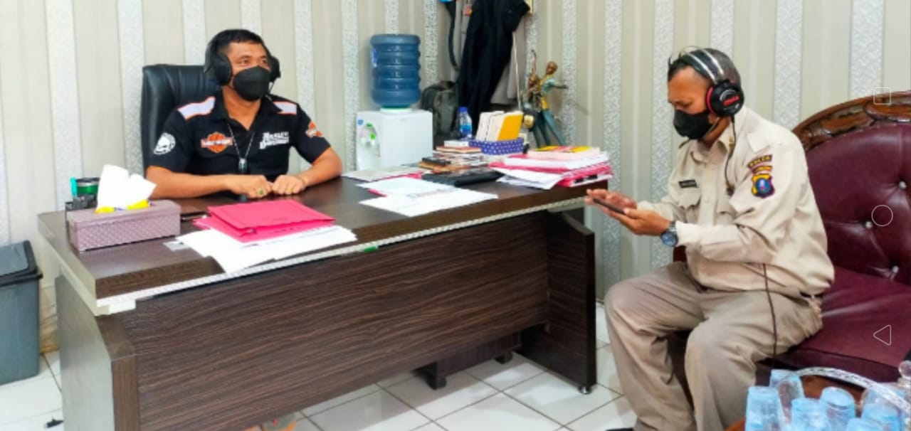 Acara Dialog Interaktif Halo Polisi ini berlangsung melalui daring telpon, dan tetap mematuhi Protokol Kesehatan secara ketat. (Hisar LG).