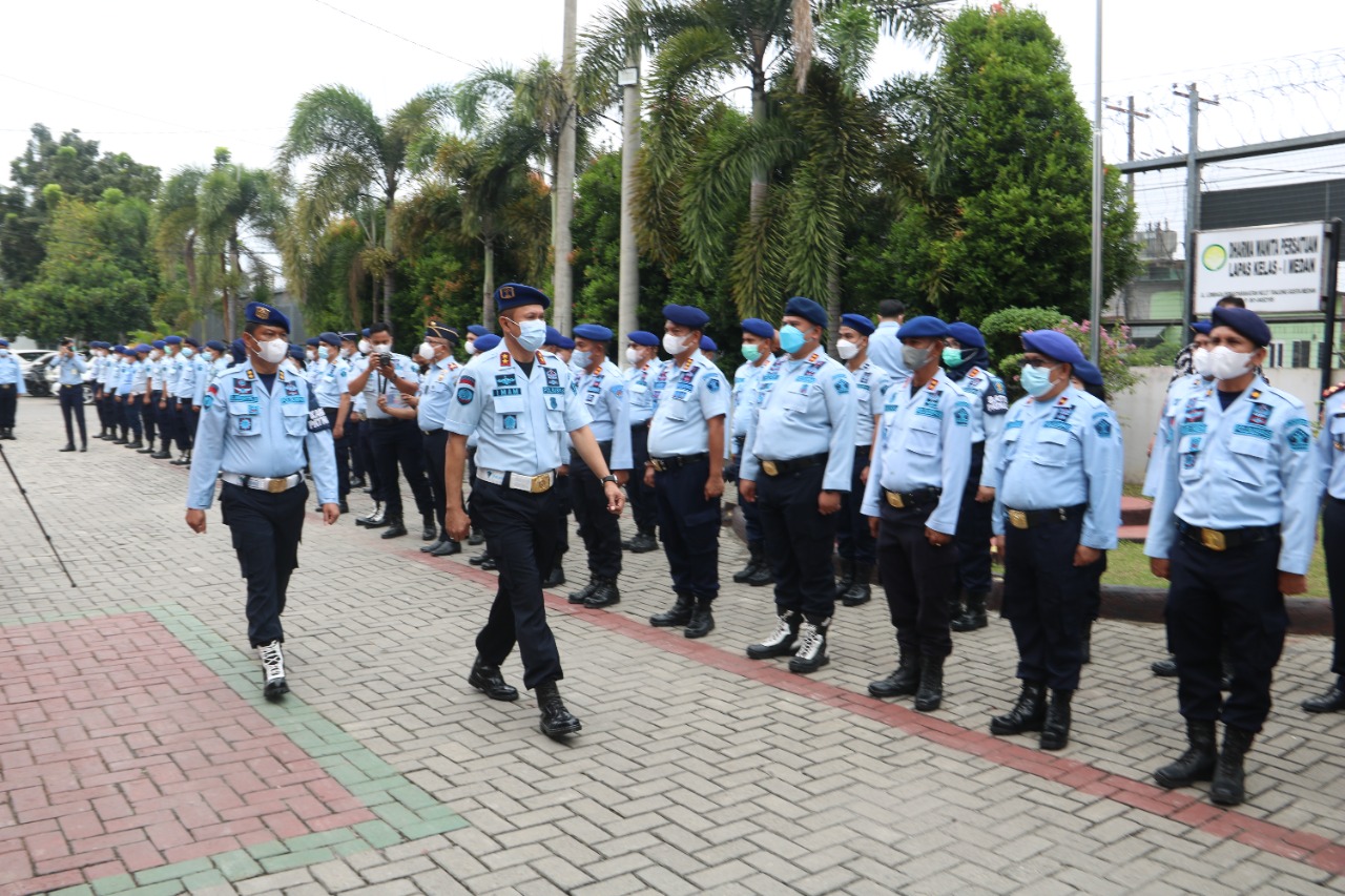 Medan – Transnusantara.co.id – Dalam rangka persiapan menjelang perayaan Natal 2021 dan Tahun Baru 2022, Kantor Wilayah Kementerian Hukum dan HAM Sumatera Utara menggelar Apel Siaga Menjelang Perayaan Natal 2021 dan Tahun Baru 2022 guna mencegah terjadinya gangguan keamanan dan ketertiban, yang berpusat di Lembaga Pemasyarakatan Kelas I Medan, Kamis 23/12/2021.