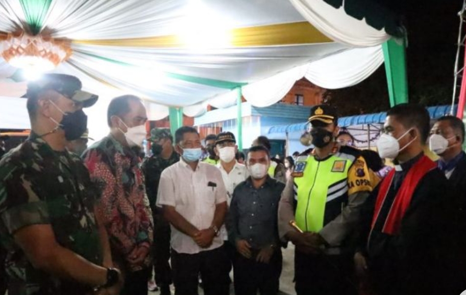Wali Kota Tebing Tinggi H.Umar Zunaidi bersama Kapolres AKBP M.Kunto Wibisono, serta Dandim 0204-DS Letkol Kav.Jackie Yudhantara mengunjungi tempat pelaksanaan ibadah Natal dibeberapa Gereja Jumat malam (24/12/2021 ).