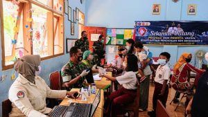 Kodim 0808/Blitar bekerja sama dengan Polkes 05.09.03 Blitar dan Dinas Kesehatan Kota Blitar, melaksanakan kegiatan serbuan vaksinasi Covid-19 kepada anak usia 6 sampai 11 tahun, yang bertempat di SDN Bendogerit 2 Jl. Pamenang No. 43 Kel. Bendogerit Kec. Sananwetan Kota Blitar, Senin (27/12/2021).