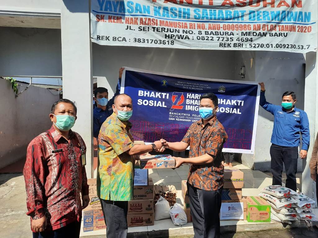 Medan – Transnusantara.co.id – Kantor Wilayah Kementerian Hukum dan Hak Asasi Manusia Sumatera Utara (Kanwil Kemenkumham Sumut) menyelenggarakan Kegiatan Bhakti Sosial yang merupakan rangkaian dari peringatan Hari Bhakti Imigrasi (HBI) ke-72.