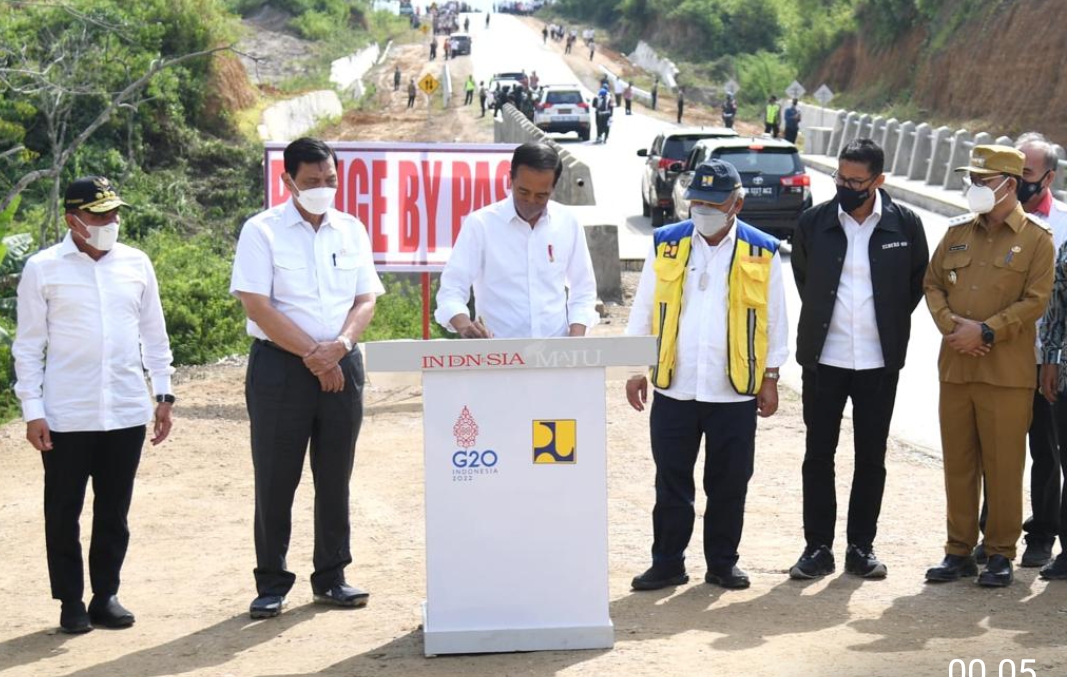“Jadi ini jalan untuk mencegah terjadinya kemacetan di Balige, sifatnya lingkar bypass sehingga traffic-traffic itu bisa melalui jalan lingkar ini,” ucap Presiden Jokowi