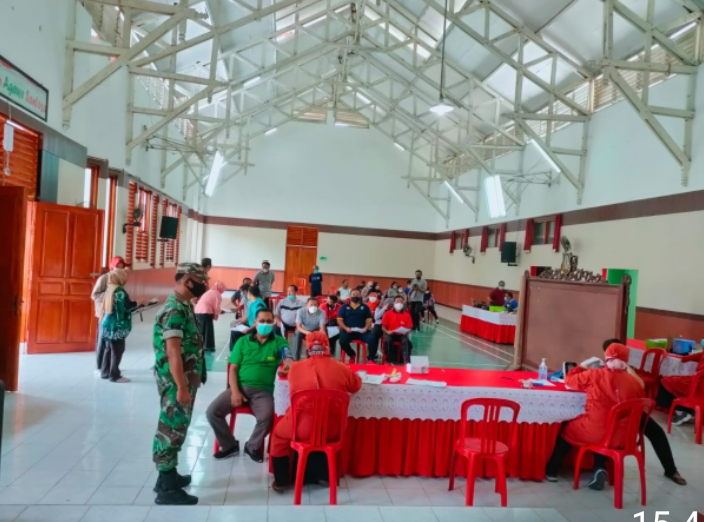 Untuk memberikan rasa nyaman dan aman, serta untuk memastikan kegiatan berjalan lancar, Babinsa Koramil Tipe B 0808/01 Sukorejo Kodim 0808/Blitar Serma Hajib, melaksanakan kegiatan pendampingan vaksinasi terhadap warga binaannya, yang bertempat di Aula Kantor Kec. Kepanjenkidul Kota Blitar, Jumat (4/2/2022).
