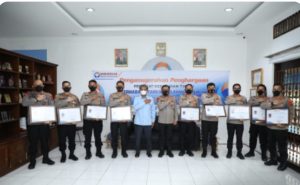 Kapolda Sumut Irjen Pol. Drs. RZ Panca Putra Simanjuntak M.Si, menerima piagam penghargaan hasil penilaian kepatuhan tinggi standar pelayanan publik Kepolisian Resort Se-Sumatera Utara dari Ombudsman Republik Indonesia Perwakilan Prov. Sumut, Rabu 09/02/22.