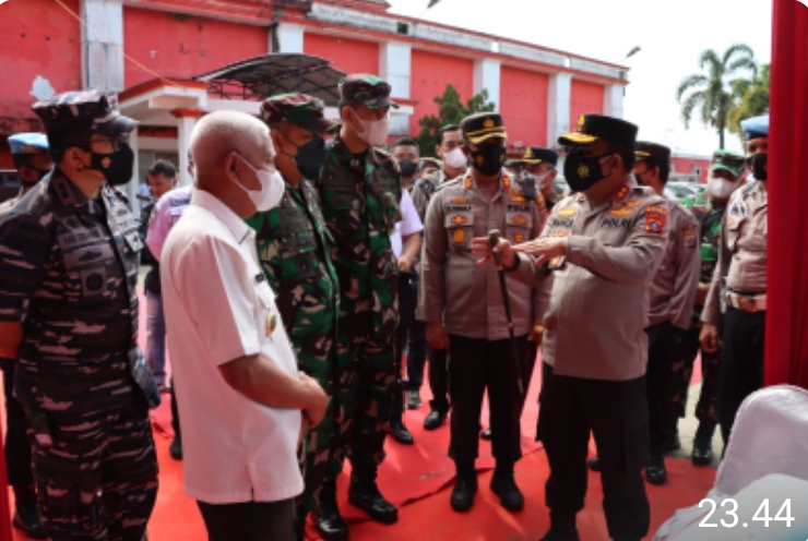 Kapolda Sumut Irjen Pol. Drs. RZ Panca Putra Simanjuntak M.Si, meninjau pelaksanaan vaksinasi serentak bagi lansia yang digelar di lapangan Stadion Mutiara Kisaran, Jumat 11/02/2022.