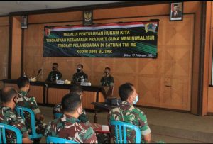 Prajurit TNI, PNS dan Persit Kartika Chandra Kirana Cabang XXII Kodim 0808/Blitar, menerima penyuluhan hukum dari Kumdam V/Brawijaya yang disampaikan langsung oleh Mayor Chk Joko Mulyono, SH dan Kapten Chk Ahmad Syaekhoni, S.I.P, SH, Kamis (17/2/2022).