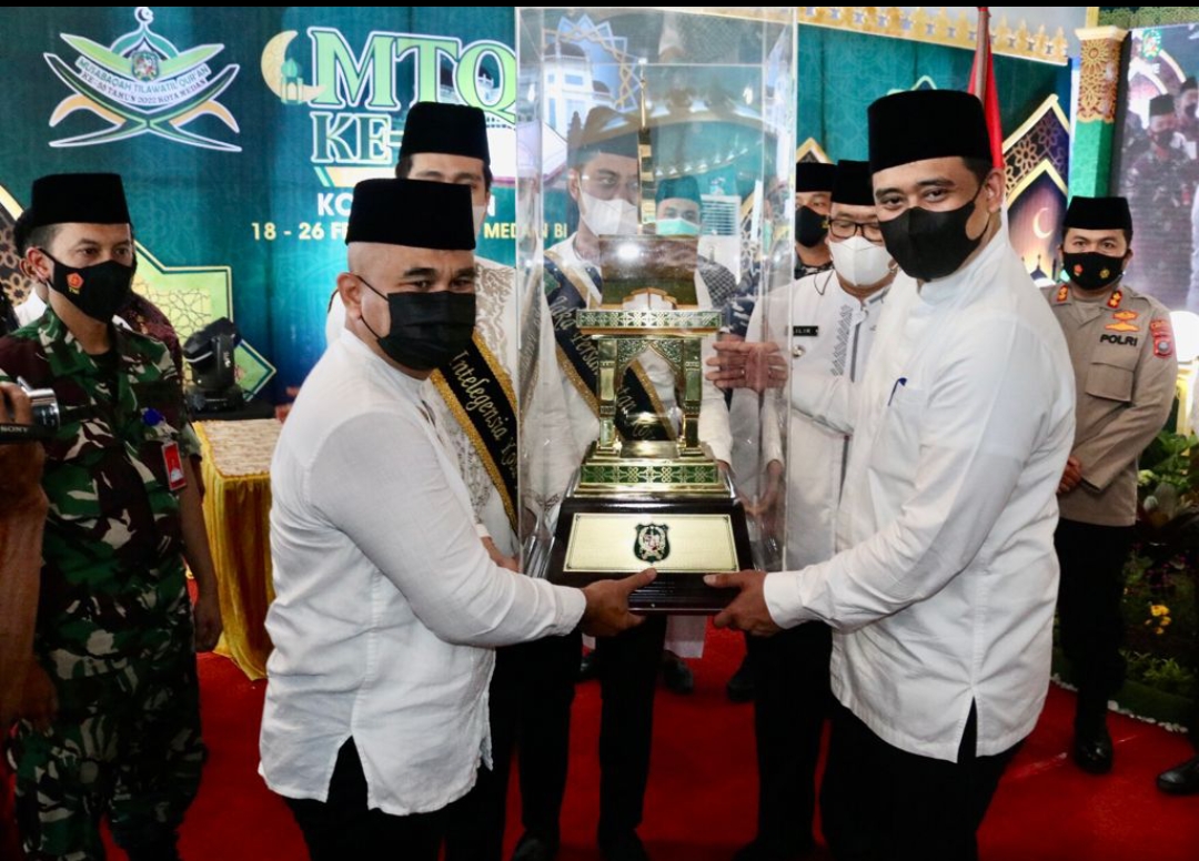 Kabar gembira ini disampaikan Bobby Nasution dalam Pembukaan MTQ ke-55 Kota Medan Tahun 2022, Jumat (18/2) di Gedung OB Sya’af Lantamal I Belawan. Turut hadir dalam acara yang menerapkan protokol kesehatan secara ketat itu, antara lain Bupati Tapteng Bachtiar Ahmad Sibarani, segenap unsur Forkopimda, Rektor USU Muryanto Amin, Rektor UINSU Syahrin Harahap, Rektor Panca Budi Muhammad Isa Indrawan, Wakil Wali Kota H. Aulia Rachman, Wakil Ketua DPRD Medan Bahrumsyah, Sekda Wiriya Alrahman, dan segenap pimpinan OPD di lingkungan Pemko Medan.