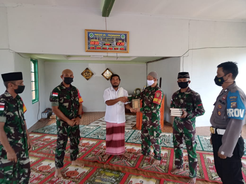 Letda Inf Agus Haris beserta tiga rekannya”,Kami berikan bantuan Alquran ini merupakan bentuk kepedulian dan perhatian kepada masyarakat khususnya yang beragama Islam,dan bisa menambah amal kebaikan bagi yang membacanya”, harapan nya Alquran ini bisa di baca oleh anak-anak maupun orang yang beribadah di masjid ini”, Pungkasnya.