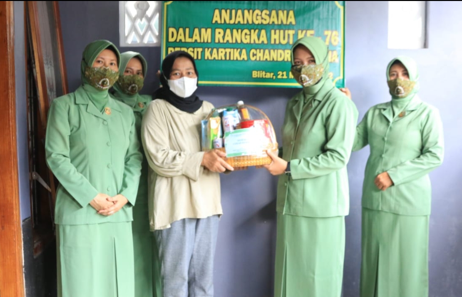 Menyambut Hari Ulang Tahun Persit ke 76 Tahun 2022, Persit KCK Cabang XXII Dim 0808/Blitar, hari ini menggelar kegiatan anjangsana dan pemberian tali asih kepada anggota Persit yang sedang sakit, Jumat (18/3/2022).