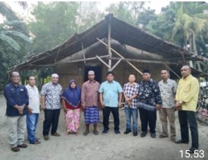 Plt Ketua DPD II Partai Golkar Langkat, Edi Surahman Sinuraya mengunjungi lokasi bedah rumah di Desa Kwala Begumit Stabat, Selasa (22/3/2022).
