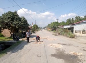 Dengan hal itu ketua GBPU serta awak media menemukan masyarakat yang peduli dengan jalan, mereka menutupi lobang lobang yang ada di jalan sei silau kec.buntu pane,tinggi raja dan gedangan dengan batu bata yang di pecah pecah.