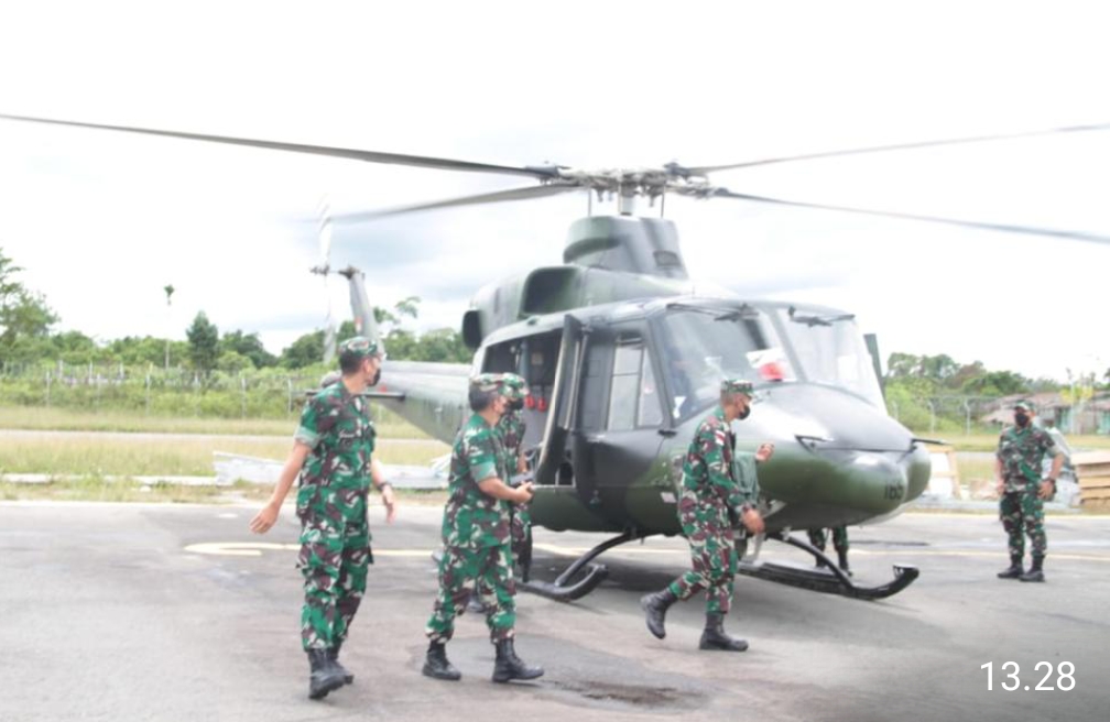 Pangdam I/BB, Mayjen TNI Achmad Daniel Chardin, SE, MSi, memberikan Pengarahan dan penekanan kepada Prajurit Satgas Pamtas RI-PNG Yonif 126/Kala Cakti yang sedang melaksanakan tugas dalam menjaga perbatasan di Pos Kotis Senggeh Sektor Utara Papua, Kab. Keerom, Senin (28/03/2022).