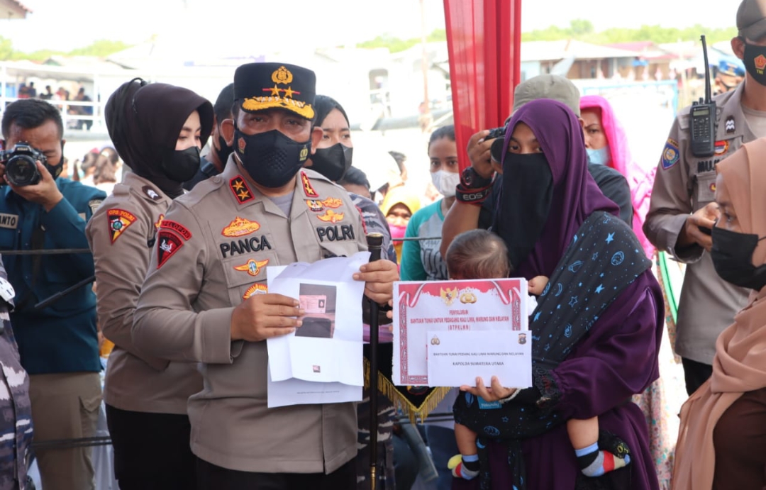 Acara penyaluran bantuan tunai ini, dihadiri Kapolda Sumut Irjen Drs. RZ Panca Putra Simanjuntak M.SI, dan Lantamal AL I Belawan Laksamana Pertama TNI Johanes Jonarko Wibowo.