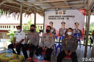 Kegiatan Vaksinasi tersebut, ditinjau langsung oleh Kapolres Nias AKBP Wawan Iriawan SIK, didampingi Kabasumda Kompol Erlonggena dan Kapolsek Lolofitumoi Iptu Narson Waruwu.