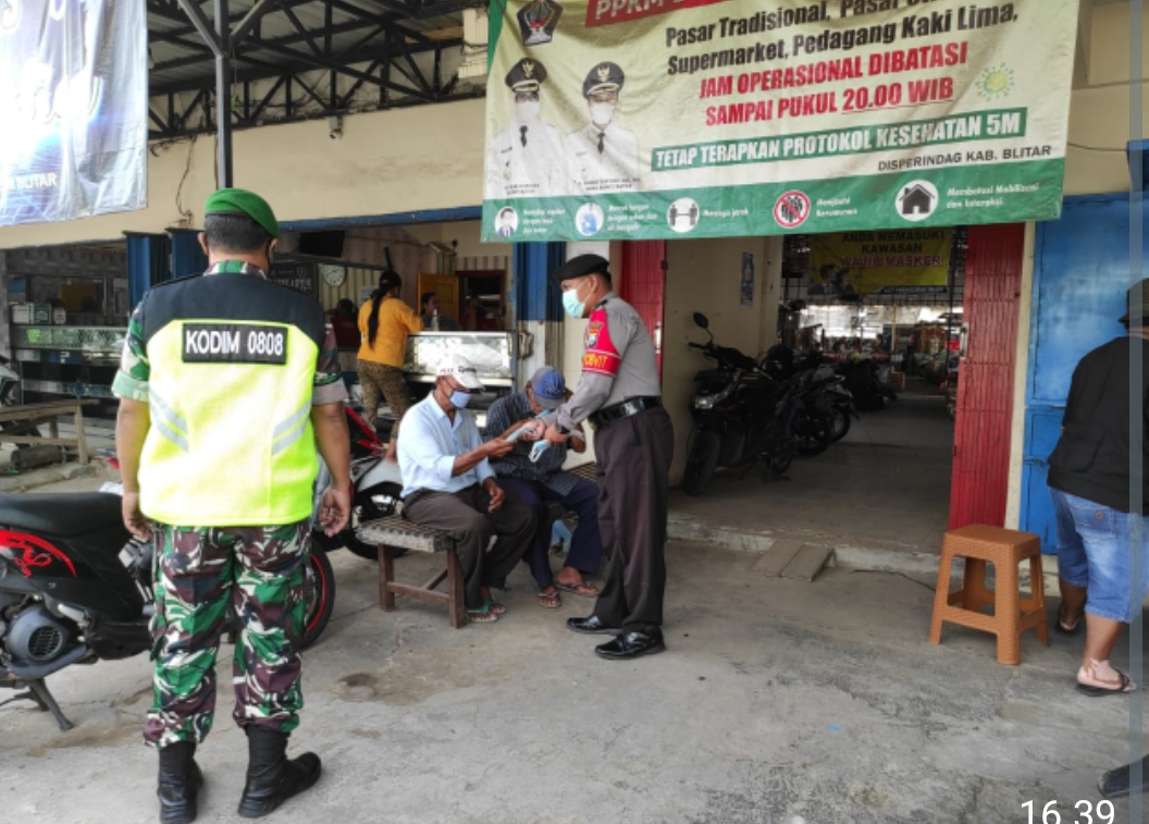 Anggota Kodim 0808/Blitar bersama personel Polri, Satpol PP dan Dinas Kesehatan Kabupaten Blitar, selalu bersinergi untuk menggelar Operasi Yustisi gabungan guna memutus dan mencegah penyebaran Covid-19, serta menerapkan disiplin protokol kesehatan.