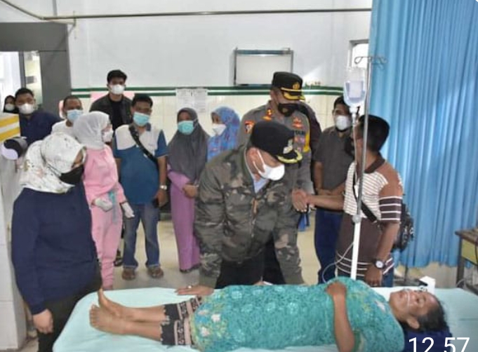 Bupati Sukhairi menjenguk para korban bersama Wakil Bupati Atika Azmi Utammi Nasution dan Kapolres Madina AKBP HM Reza Chairul AS.