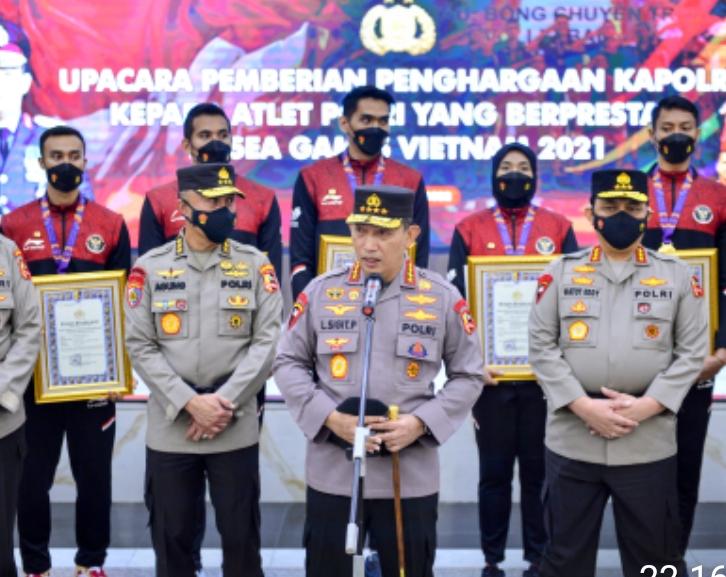 Jakarta – Transnusantara.co.id – Kapolri Jenderal Listyo Sigit Prabowo memberikan penghargaan sebagai bentuk apresiasi kepada personel Polri sebagai atlet yang telah menyumbangkan medali emas, perak dan perunggu untuk Indonesia dalam perhelatan Sea Games Vietnam.
