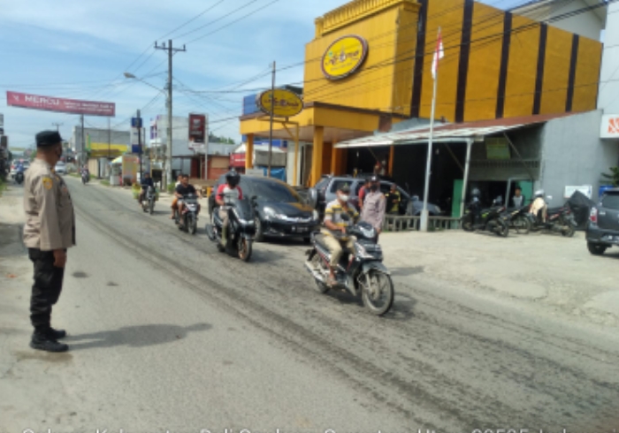 Para Anggota Unit Lantas dan Sabhara Polsek Galang terlihat turun ke jalan melaksanakan kegiatan Pengaturan Lalu Lintas dan Patroli di Pusat Pasar Galang Jalan Perintis Kemerdekaan Kelurahan Galang Kota Kecamatan Galang untuk melancarkan Arus Lalu Lintas serta Ciptakan Situasi Kamtibmas yang kondusif.