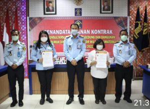 Medan – Transnusantara.co.id – Kantor Wilayah Kementerian Hukum dan Hak Asasi Manusia Sumatera Utara melaksanakan Penandatanganan Kontrak Jasa Konsultasi Perencanaan Gedung dan Bangunan Rehabilitasi Rumah Dinas Negara Kantor Wilayah Sumatera Utara Tahun Anggaran 2022. Bertempat diruang Saharjo, Senin (27/06/2022).