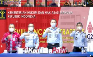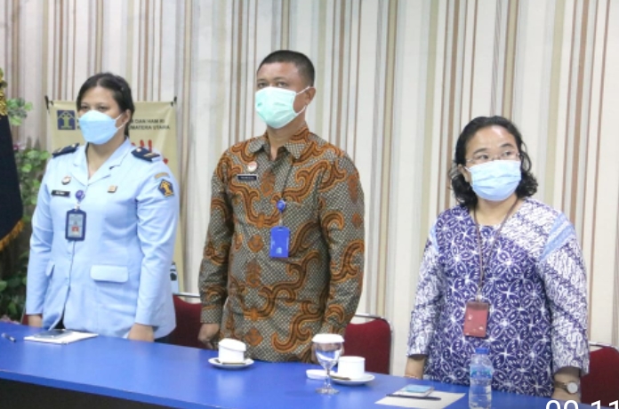 Kantor Wilayah Kementerian Hukum dan HAM Sumatera Utara yang diikuti oleh Kepala Kantor Wilayah Imam Suyudi, Kepala Divisi Administrasi Rudi Hartono, Kepala Divisi Pemasyarakatan Erwedi Supriyatno, Kepala Divisi Keimigrasian Ignatius Purwanto, Kepala Bagian Program dan Humas Hotmonaria Damanik, Kepala Subbagian Program dan Pelaporan Fahrizal, Kepala Subbagian Humas, RB dan TI Bambang Suhendra dan pegawai Sub bagian Program dan Pelaporan mengikuti secara daring bertempat di ruang Saharjo.
