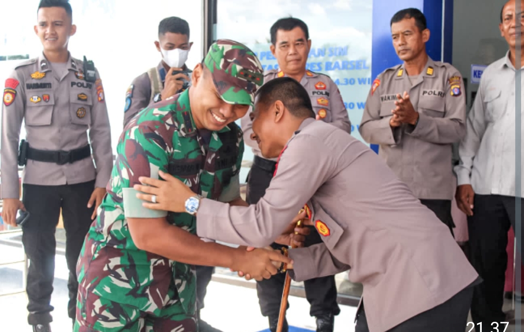 Barito Selatan – Dandim 1012/Buntok Letkol Inf Hendro Wicaksono S.I.P yang didampingi Perwira Staf,Anggota staf dan Babinsa Koramil 10/Dusun Selatan melaksanakan Anjangsana ke Polres Barito Selatan yang diterima langsung Kapolres Barsel AKBP Yusfandi Usman S.I.K., M.I.K., dalam rangka mengucapkan Selamat Hari Bhayangkara Ke-76 Tahun 2022 dengan membawa Kue ucapan selamat Ulang Tahun sebagai ungkapan kepada Polri yang Presisi menuju Indonesia Tnngguh-Indonesia Tumbuh.
