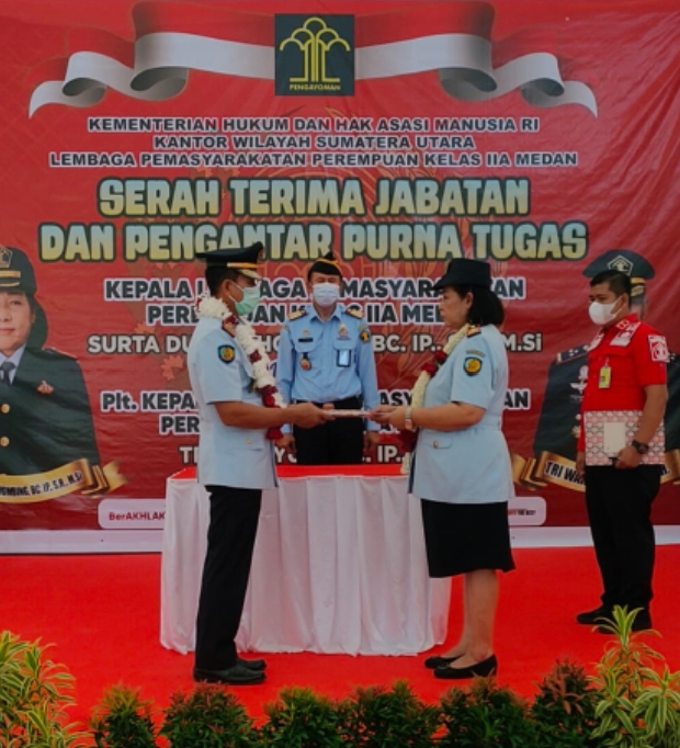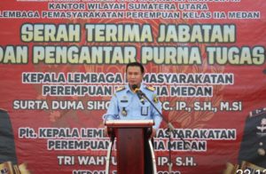 Medan – Transnusantara.co.id – Hari ini Kepala Kantor Wilayah Kementerian Hukum dan Hak Asasi Manusia Sumatera Utara menghadiri acara Serah Terima Jabatan dan Pengantar Purna Tugas Kepala Lembaga Pemasyarakatan Perempuan (LPP) Kelas IIA Medan dari Pejabat lama Surta Duma Sihombing, yang memasuki masa Purnabakti, kepada Pejabat baru Plt. Kepala Lembaga Pemasyarakatan Perempuan Kelas IIA Medan Tri Wahyudi, Bertempat di Aula Lembaga Pemasyarakatan Perempuan Kelas IIA Medan, Kamis (30/06/2022).