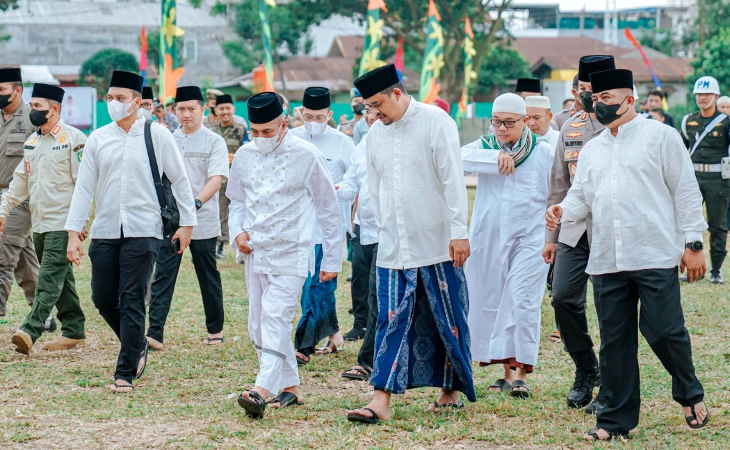 Wali Kota Medan Bobby Nasution terlihat begitu khusyuk saat menjalankan Shalat Idul Adha di Lapangan Gajah Mada Jalan Krakatau Medan, Minggu (10/7). Selain bersama Wakil Wali Kota Medan H Aulia Rachman, Gubernur Sumut Edy Rahmayadi, Dandim 0201/Medan Kol Inf Ferry Muzawad, Sekda Kota Medan Wiriya Alrahman serta sejumlah pimpinan OPD di lingkungan Pemko Medan juga ikut serta dalam Shalat Idul Adha tersebut.