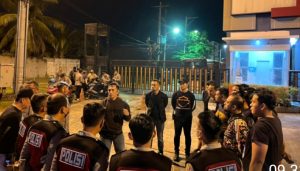Polresta Deli Serdang Melaksanakan Apel Persiapan Patroli Presisi Guna Menciptakan Situasi Aman dan Kondusif Didepan Wira Logistic Center / Wiraland Desa Wonosari Kecamatan Tanjung Morawa Kabupaten Deli Serdang pada hari Sabtu 09 Juli 2022 pukul 21.00 wib malam.