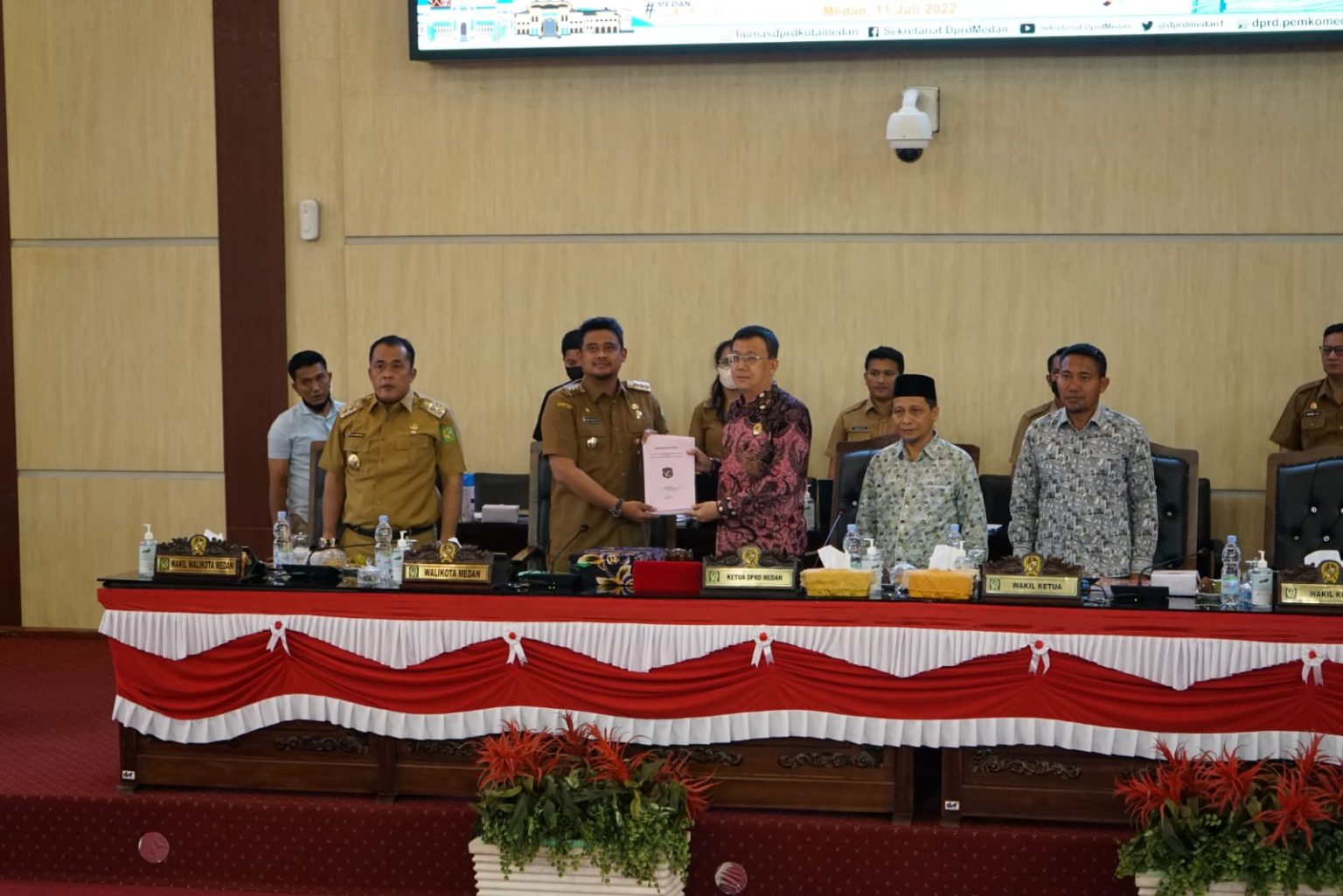 MEDAN, Transnusantara.co.id – Rapat Paripurna penyampaian Nota Pengantar Walikota Medan terhadap Ranperda Kota Medan Tentang Pengelolaan Keuangan Daerah Kepada DPRD Kota Medan, Senin (11/7).