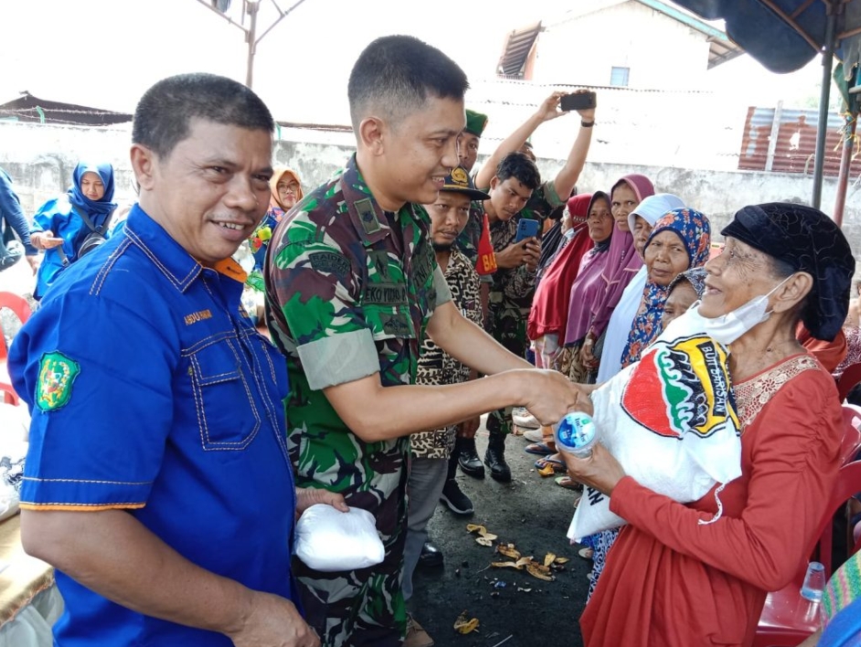 BELAWAN, Pengurus Karang Taruna Kecamatan Medan Belawan berkolaborasi dengan Kodam 1/BB melaksanakan kegiatan sosial di Kelurahan Belawan Bahari, membagikan paket sembako kepada warga korban musibah kebakaran, warga kurang mampu, dan lansia, Jumat (5/8/2022).