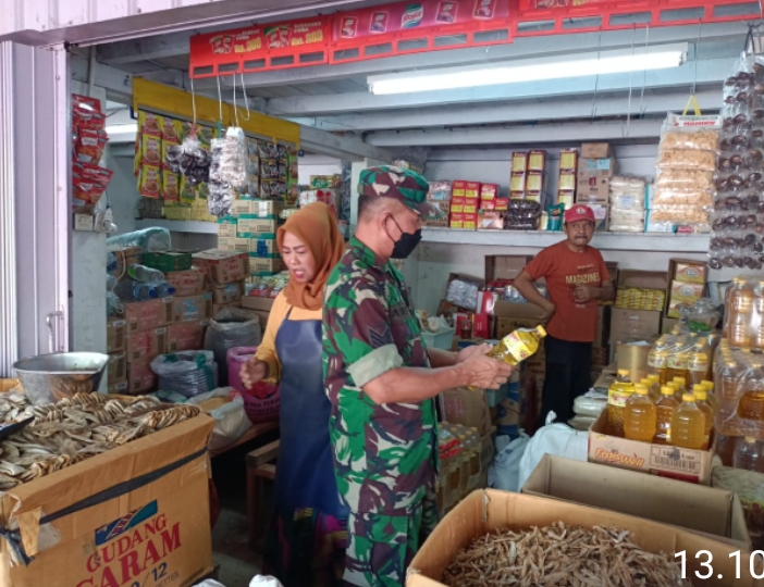 Blitar – Untuk memastikan harga eceran tertinggi minyak goreng, khususnya minyak goreng curah tetap stabil, Babinsa Koramil Tipe B 0808/01 Sukorejo Kodim 0808/Blitar Serma Arif Purwanto melaksanakan pengecekan harga minyak goreng curah ke toko toko yang ada di wilayah binaannya, di Kel. Kauman Kec. Kepanjenkidul Kota Blitar, Sabtu (6/8/2022).
