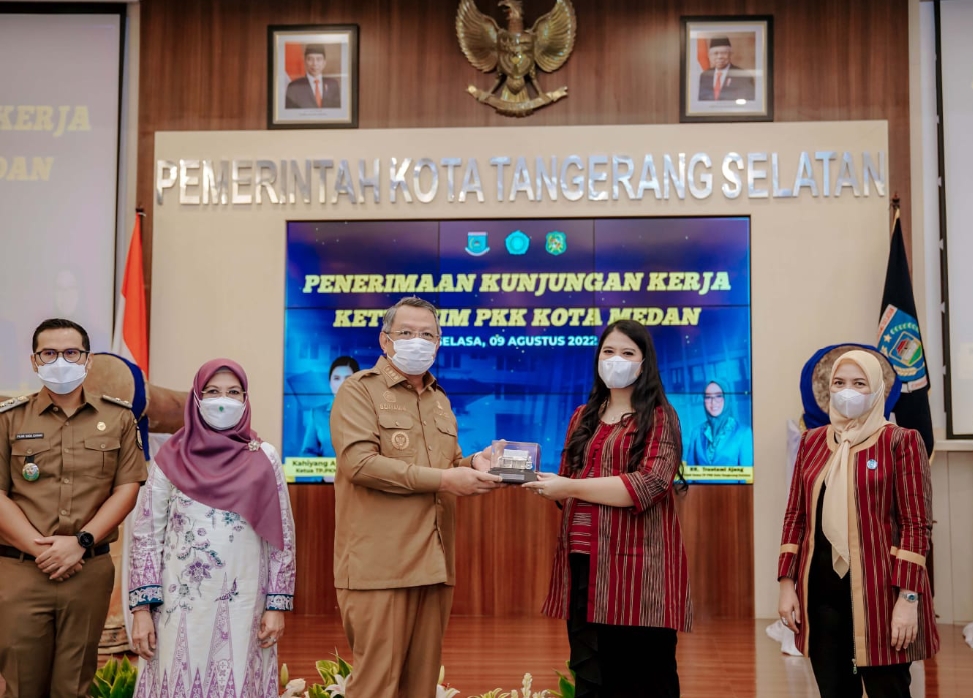 Sebagai wujud dukungan pengembangan Usaha Peningkatan Pendapatan Keluarga (UP2K) PKK di Kota Medan, Tim Penggerak PKK Kota Medan yang dipimpin Ny Kahiyang Ayu M Bobby Afif Nasution selaku ketua melakukan kunjungan kerja (kunker) ke TP PKK Tangerang Selatan (Tangsel), Selasa (9/8). Selain bersilaturahmi, tujuan kedatangan juga untuk menggali informasi dan mempelajari UP2K yang telah dikembangkan di Kota Tangsel tersebut.