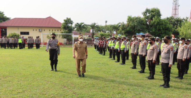 Apel Kesiapsiagaan Antisipasi Bencana Alam Karhutla 2022 Digelar Kepolisian Resor Kota Deli Serdang Polda Sumatera Utara, di Lapangan Hijau Polresta Deli Serdang, pada Jumat (12/08/2022).
