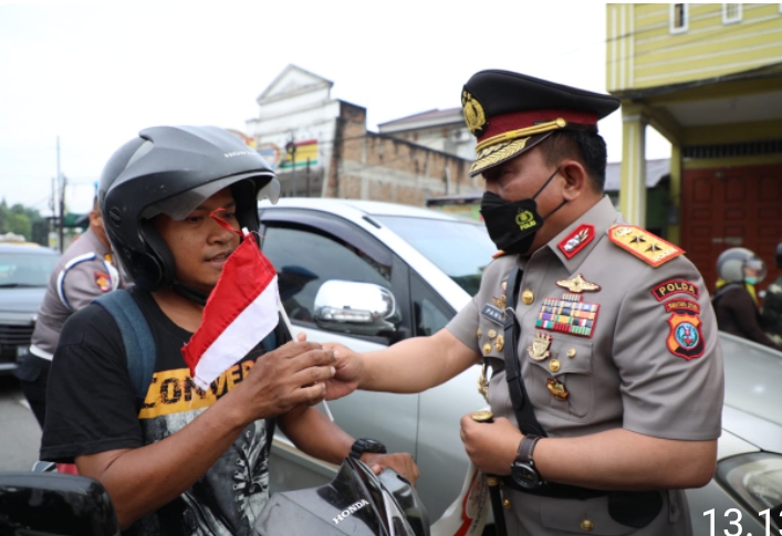 Semarak HUT RI ke 77, Polda Sumut Bagikan 30.000 Bendera Merah Putih Kuatkan Nasionalisme