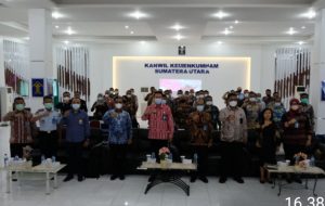 Medan – Transnusantara.co.id – Kepala Kantor Wilayah Kementerian Hukum dan Hak Asasi Manusia Sumatera Utara Imam Suyudi membuka Sosialisasi Penyusunan Rekomendasi Kebijakan