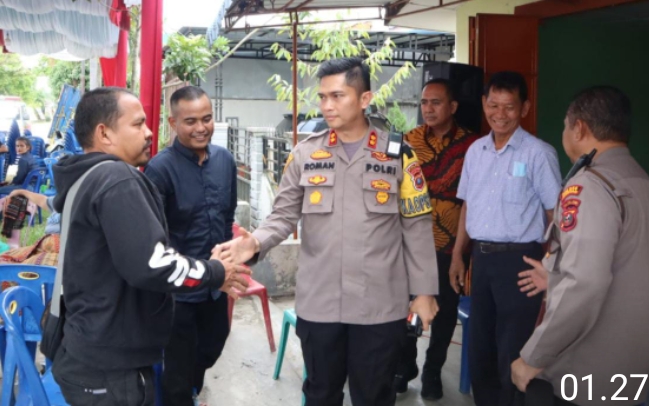 Kapolres Asahan AKBP Roman Smaradhana Elhaj SH SIK MH melayat kerumah duka orang tua Ketum GMKI di Jalan FL.Tobing, Kisaran, Minggu (25/9/2022).
